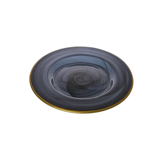 Classic Touch 11 in. Black Alabaster Dinner Plates with Gold-Scalloped, Set of 4