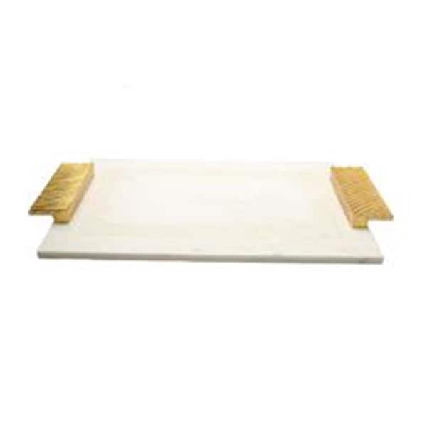 Classic Touch White Marble Challah Tray with Gold Embossed Handles - 16 x 11 in.