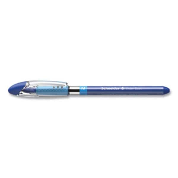 0.8mm Schneider Slider Stick Ballpoint Pen, Blue & Silver Barrel, 10PK