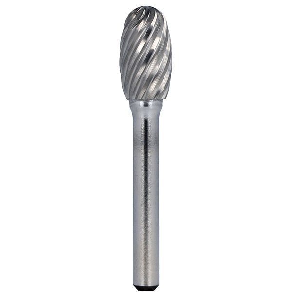 Carbide Bur, End Type Radius, Cut Type Double, Shank Dia. 1/4 in, Head Dia. 3/8 in, Head Length 5/8 in, Included Angle Not Applicable, Overall Length 2 3/8 in, Trade Number SE-3NX, Primary Material Application Stainless Steel, Head Shape Oval, Operating Speed - Maximum 66,000 RPM, List Number 1851, System of Measurement Inch, Coating Bright (Uncoated), Head Material Carbide, Shank Material Hardened Steel