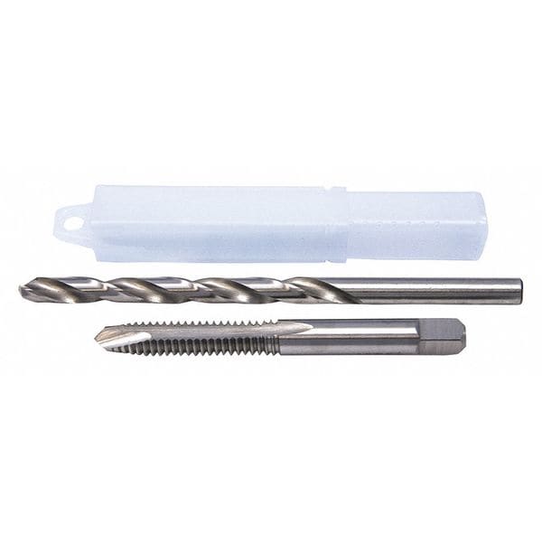 Drill Bit and Tap Set, Number of Pieces 2, Tap Type Spiral Point, Drill Bit Material High Speed Steel, Drill Bit Finish Bright (Uncoated), Drill Bit Dia. Included #7, Measurement System Fractional Inch, Drill Bit Point Angle 118 Degrees , Impact Rated Not Impact Rated, Smallest Drill Bit Dia. #7