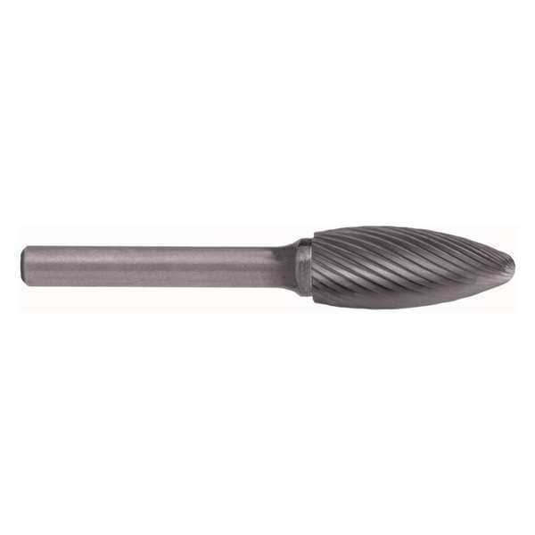 Flame Bur SH, Cut Type Single, Shank Dia. 3 mm, Head Dia. 4 49/64 mm, Head Length 9 1/2 mm, Included Angle Not Applicable, Overall Length 38 3/32 mm, Trade Number SH-53, Head Shape Flame, Coating Bright (Uncoated), Head Material Carbide, Shank Material Carbide