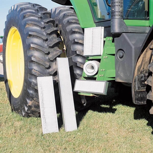 Unlike standard cab filters that have only a paper-like medium to trap dusts, our three-stage filter combines dust filter mediums (Stage 1) with activated charcoal (Stage 2) which adsorbs pesticide and other organic vapors and traps pollen and molds. A final filter (Stage 3) reduces the amount of charcoal fines entering your cab, so you breathe cleaner air. each filter is housed in a durable metal case and is designed to fit snugly in your tractor cab. Replace filters annually or when you begin to again taste or smell chemical vapors.