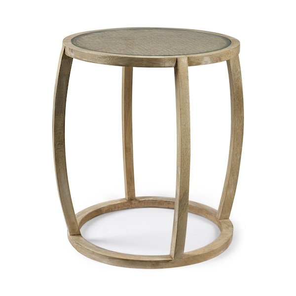 26.2 in. Wood Round Top Accent Table with Glass, Light Brown