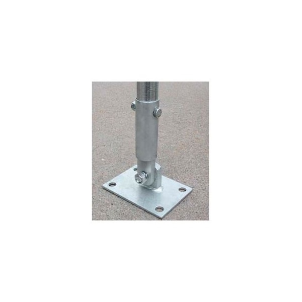 safely secures your building or canopy to any wood or concrete surface!!heavy duty mounting feet can be used on all surfaces. 4" x 5-1/2" feet have 4 pre-drilled 1/2" fastening holes. Can accommodate two pipe sizes.