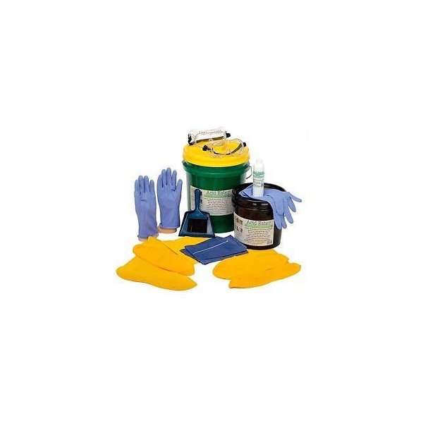 ACID EATER BATTERY ACID SPILL KIT, CLIFT INDUSTRIES 1006-001 CONTAINS, ABSORBS AND NEUTRALIZES BATTERY ACID SPILLS. PELLET FORMULA ABSORBS MORE AND REQUIRES LESS CLEAN-UP. DOES NOT CREATE HAZARDOUS DUST CLOUDS OR LEAVE HARMFUL RESIDUES. CONTAINS ALL NECESSARY PERSONAL PROTECTION EQUIPMENT TO SAFELY NEUTRALIZE AND DISPOSE OF BATTERY ACID SPILLS. COMPLIES WITH OSHA REGULATION 1910.178(G). FACILITIES MUST HAVE MEANS TO NEUTRALIZE SPILLED ACID. FAST, EASY TO USE AND LAND-FILL DISPOSABLE. INCLUDES: 2 GALLONS ACID EATER ABSORBER & NEUTRALIZER, 2 PAIRS SAFETY GOGGLES, 2 PAIRS HAZMAT BOOT COVERS, 2 VINYL APRONS (8 MIL.), 2 PAIRS 18 MIL. LATEX GLOVES, WHISK BROOM/DUST PAN, DISPOSAL BAG, 8 OZ. ACID EATER NEUTRALIZER & DEGREASER. THIS PRODUCT IS INCLUDED IN A 5 GALLON PAIL.