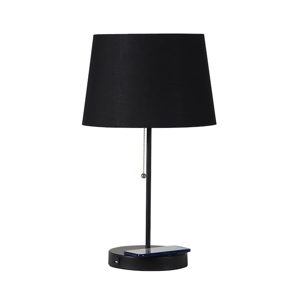 20.75 in. Sterling Matte Non-Gloss Black Table Lamp with Wireless Charging Station & USB Port