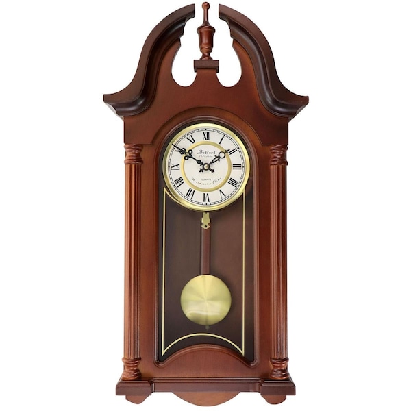 27 in. Delphine Chiming Pendulum Wall Clock, Mahogany