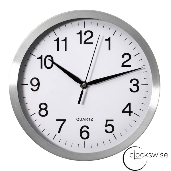 10-in Round Quartz Wall Clock Non-Ticking Battery Operated with Silent Sweep Movement,