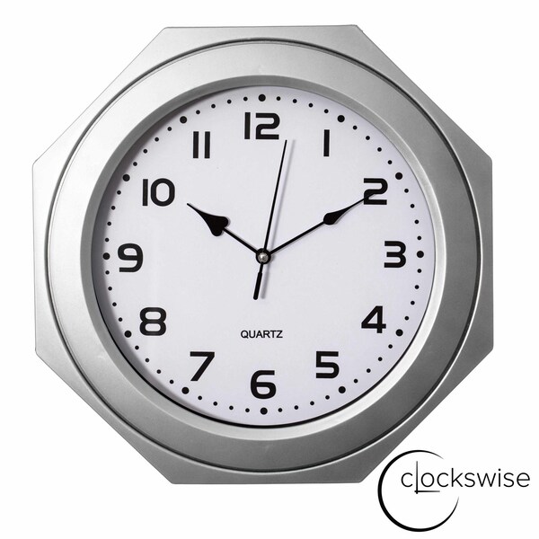 12-in Non-Ticking Octagon Plastic Analog Wall Clock - Elegant Decorative Accent for Home Decor in