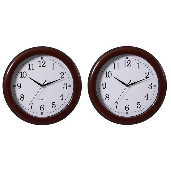 13.75 Inch Plastic Brown Round Silent, Non-Ticking Battery Operated Analog Wall Clock, 2PK