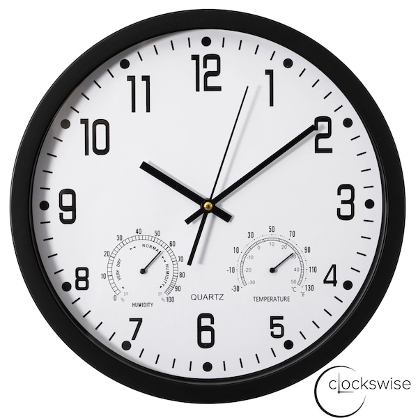 14-inch Non-Ticking Quartz Wall Clock with Thermometer & Hygrometer - Battery Operated