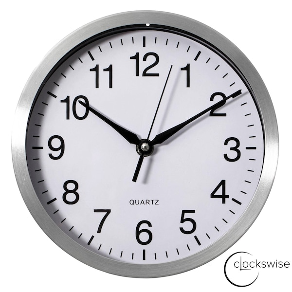 8-in Round Quartz Wall Clock Non-Ticking Battery Operated with Silent Sweep Movement,