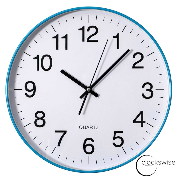 Blue 14-In Analog Clock - Silent, Non-Ticking for Wall - Battery-Operated Perfect for Home