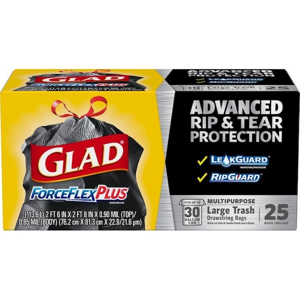 Stretchable strength. Only Glad has the stretchable strength of ForceFlex, stretches to prevent punctures and rips. Fill it, stretch it and stuff it with just about anything - even boxes. Unique diamond texture stretches around objects. Glad ForceFlex bags help keep trash out of your way. Not recommended for food storage.