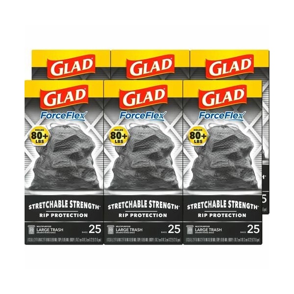 BAGS, FRCEFLX, 30GAL, 25CT, BLK, 6PK