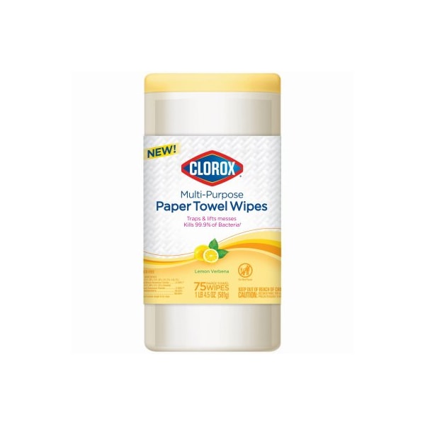 Clorox Multi Purpose Paper Towel Wipe Lemon Verbena Scent traps and lifts messes and kills 999 of bacteria