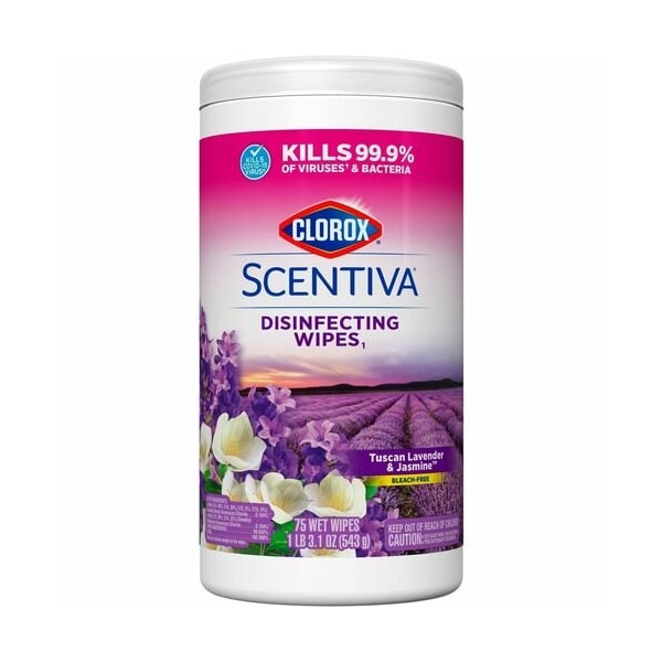 Clean and disinfect your home while enjoying a captivating, long-lasting scent by using these bleach-free, all-in-one cleaning wipes. Clorox Scentiva Disinfecting Wipes kill 99.9 percent of viruses and bacteria, including the COVID-19 Virus, on hard, nonporous surfaces in 15 seconds with the power of Clorox clean when used as directed. These multi-surface cleaning wipes feature a clear-drying formula that powers through grease, soap scum and grime so you can tackle any surface with confidence. Clorox Scentiva Disinfecting Wipes even prevent bacteria growth for up to 24 hours on nonfood-contact surfaces. Safely wipe down garbage cans, sinks, toys, remotes and appliances, or clean up car spills with these nonbleach sanitizing wipes. This canister of disposable, antibacterial wipes features a scent to freshen your home and inspire the senses.