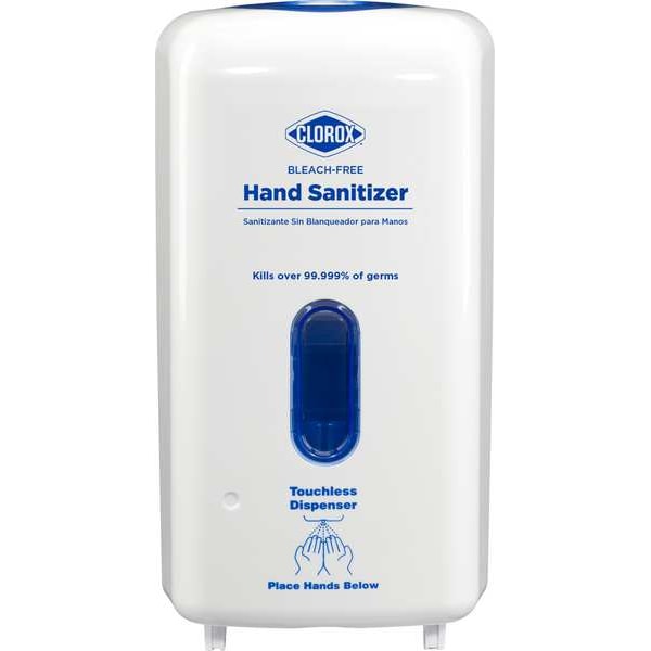 Hand Sanitizer Dispenser, Color White, Mount Type Wall, Product Type Hand Sanitizer Dispenser, Material Plastic, Series Clorox Touchless, Finish Smooth, For Use with Mfr Model Number 20RK90, Refill Size 1 L, Operation Mode Automatic, Power Source Battery, Batteries Included Yes, Overall Depth 5 in, Overall Height 13 1/8 in, Overall Width 7 1/4 in, Counter Hole Diameter Not Applicable, Maximum Countertop Thickness Not Applicable, Spout Length Not Applicable, Form Liquid, Standards Not Applicable