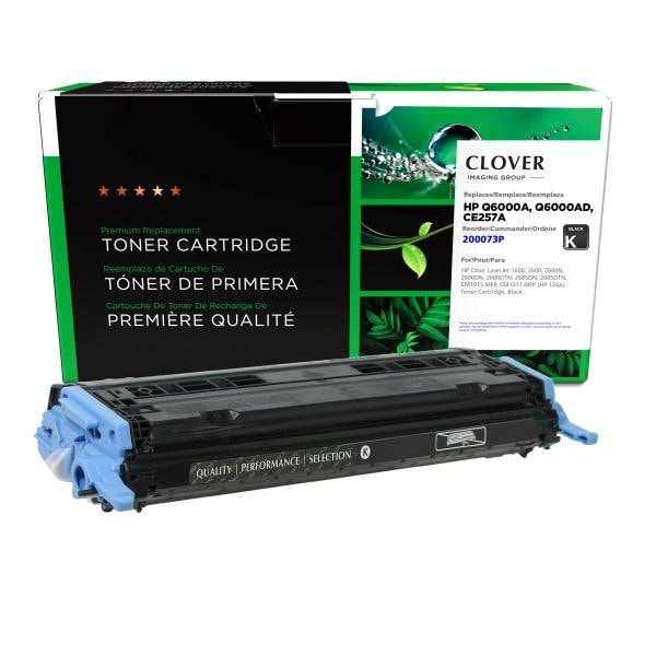 Clover Imagings color laser cartridges are developed using state-of-the-art, high-quality color toner that performs as well as, or better than, Original Equipment Manufacturer OEM cartridges. Clover Imagings environmentally sustainable color laser cartridges are remanufactured using 89.6% recycled content and are designed to keep cartridges out of landfills and money in your pocket.Clover Imaging has the solution for you.Clover remanufactured printer cartridges are designed to meet or exceed HP brand print quality, page yield, and reliability.Compatible Hardware: HP Color LaserJet 1600, 2600, 2600N, 2600DN, 2600DTN, 2605DN, 2605DTN, CM1015 MFP, CM1017 MFP HP 124APage Yield: 2500 | Color: BlackCompatible with: HP Color LaserJet 1600, HP Color LaserJet 2600, HP Color LaserJet 2600DN, HP Color LaserJet 2600DTN, HP Color LaserJet 2600N, HP Color LaserJet 2605DN, HP Color LaserJet 2605DTN, HP Color LaserJet CM1015 MFP, HP Color LaserJet CM1017 MFP. Compares to: HP 124A, HP Q6000A.