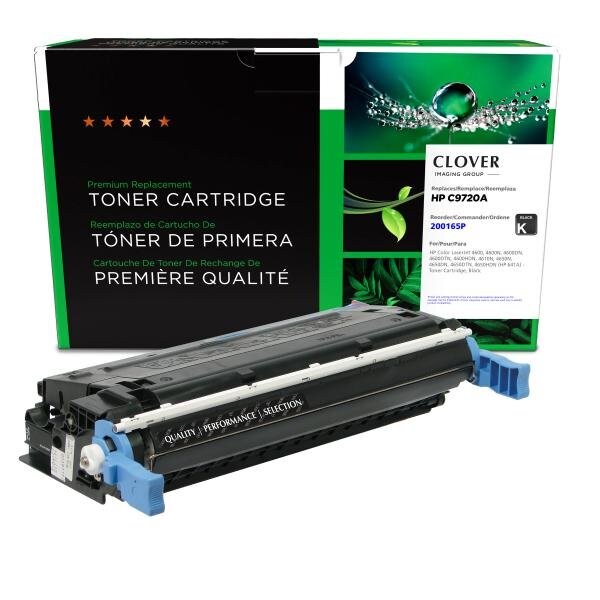 Clover Imagings color laser cartridges are developed using state-of-the-art, high-quality color toner that performs as well as, or better than, Original Equipment Manufacturer OEM cartridges. Clover Imagings environmentally sustainable color laser cartridges are remanufactured using 89.6% recycled content and are designed to keep cartridges out of landfills and money in your pocket.Clover Imaging has the solution for you.Clover remanufactured printer cartridges are designed to meet or exceed HP brand print quality, page yield, and reliability.Compatible Hardware: HP Color LaserJet 4600, 4600N, 4600DN, 4600DTN, 4600HDN, 4610N, 4650N, 4650DN, 4650DTN, 4650HDN HP 641A; Canon ImageCLASS C2500, LBP-2510 EP-85Page Yield: 9000 | Color: BlackCompatible with: HP Color LaserJet 4600, HP Color LaserJet 4600DN, HP Color LaserJet 4600DTN, HP Color LaserJet 4600HDN, HP Color LaserJet 4600N, HP Color LaserJet 4610N, HP Color LaserJet 4650DN, HP Color LaserJet 4650DTN, HP Color LaserJet 4650HDN, HP Color LaserJet 4650N. Compares to: Canon 6825A004AA, Canon EP-85, HP 641A, HP C9720A.