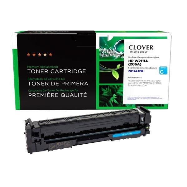 Clover Imagings color laser cartridges are developed using state-of-the-art, high-quality color toner that performs as well as, or better than, Original Equipment Manufacturer OEM cartridges. Clover Imagings environmentally sustainable color laser cartridges are remanufactured using 89.6% recycled content and are designed to keep cartridges out of landfills and money in your pocket.Clover Imaging has the solution for you.Clover remanufactured printer cartridges are designed to meet or exceed HP brand print quality, page yield, and reliability.Compatible Hardware: HP Color LaserJet Pro M255DW; Color LaserJet Pro MFP M283FDW HP 206APage Yield: 1250 | Color: CyanCompatible with: HP Color LaserJet Pro M255DW, HP Color LaserJet Pro MFP M283FDW.