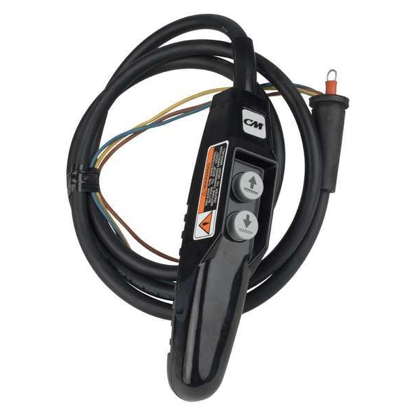 Pendant Station with Cord, Product Type Pendant Station, Connection Type Wired, Controller Cord Length 6.5 ft, Functions Up/Down, Controls Push Button Handheld, Color Black, Compatible Hoist Type Electric Chain Hoists, Compatible Series CM Valustar, Compatible with Manufacturer Part Number 2725, 2732, 2735, 2742, 2745, 2752, 2755, 2762, 2765, 3515, 3522, 3525, 3532, 3535, 3545, 3555, 3565, 9501, 9505, 9508, For Use With Electric Hoist, Overall Length 6.5 ft, Includes Cord, Station