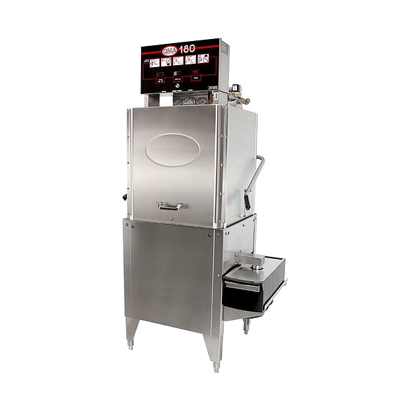 Upright Dishwasher, Configuration Straight, Features High Temperature, (3) Door, Includes Automatic Start/Stop, Delime Switch, Inside Drain Sump, Poly Pro Scrap Accumulator, Prime Switches, Top Mounted Controls, Material Stainless Steel, Overall Height 79 in, Phase Three-Phase, Rinse Temperature - Maximum 195 Degrees F, Voltage 220V, Water Usage 0.82 gal
