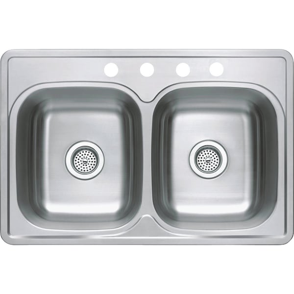 Top mount 50/50 double bowl constructed with premium grade 304 stainless steel. Offering your sink a kind of durability and strength others cant. This sink has a 6-inch depth 23-gauge and a standard 3-1/2-inch drain opening. The lustrous satin finish and is fully coated underneath with a heavy-duty sound deadening pad to give your sink a stellar shine and maximum noise absorption. Complete with u-channel clips installation instructions and cutout template with a DXF file available this sink is everything youve been looking for and more.