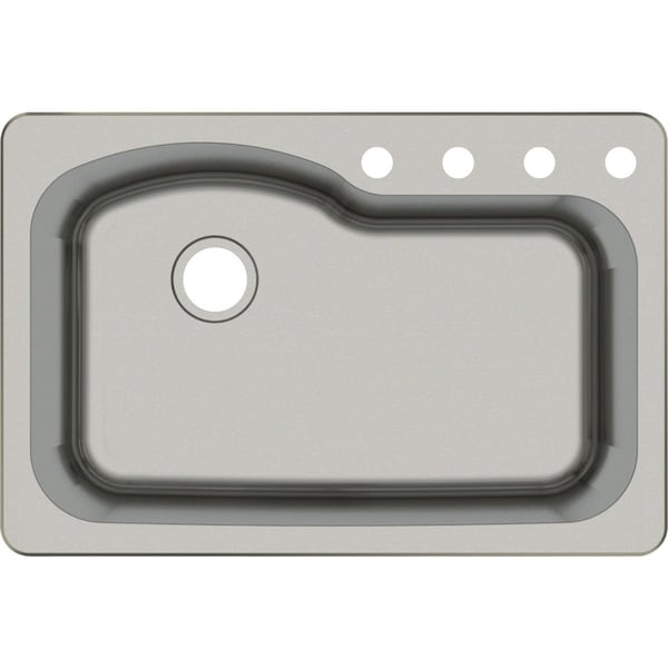 Top mount large off-set single bowl in a stainless steel finish makes for a clean and practical addition to your kitchen. Featuring a 9-inch depth bowl this sink is perfect for all your cleaning and prepping needs. Made with 18-gauge steel a standard 3-1/2-inch drain opening a lustrous satin finish and is fully coated underneath with heavy-duty sound deadening pad this sink is ready to work and shine. Also includes u-channel clips installation instructions and cutout template with a DXF file available for your installation needs. Constructed with premium grade 304 stainless steel.
