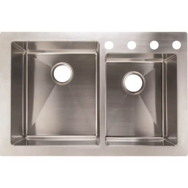 Compass Manufacturing 33'' x 22'' x 9''/7'' 60/40 Double Bowl Dual Mount Offset Kitchen Farm Sink