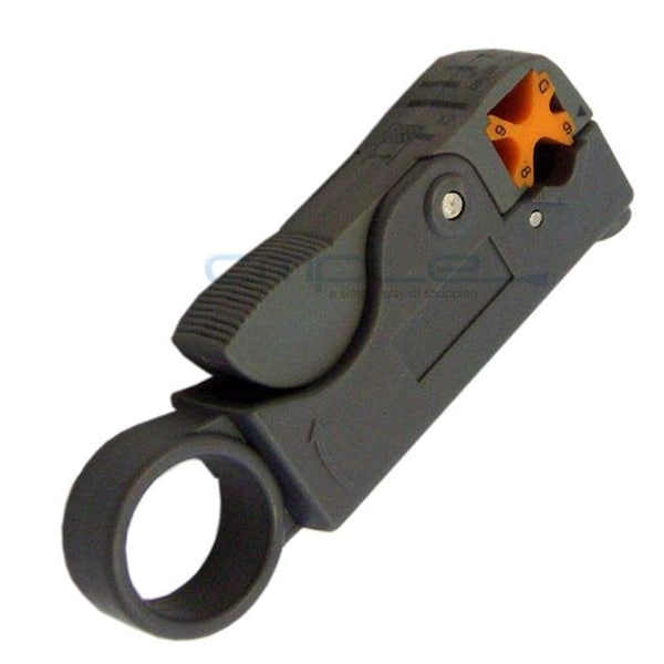 Coaxial Cable Rotary Stripping Tool. Premium Quality! Strips all coaxial cables including dual and quad shielded. Complete Stripping in just a few turns, no special requirement. Strip in seconds! Dual blade system. One blade strips the outer insulation. The second blade strips the inner dielectric insulator down to the center copper electrode. Lightweight ergonomic design. Fully adjustable 2 blade design lasts for hundreds of coax cuts. Can be used for RG-59, RG-59 Quad, RG-6, RG-6 Quad, and RG-58.