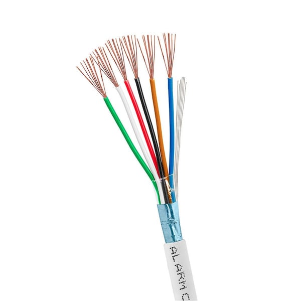 Multi-Conductor Cable, 22 AWG, 6 C, White, Stranded, 1000 ft