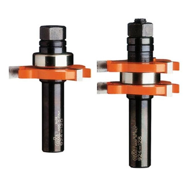 Make tongue and groove joints without the complicated process of taking apart and reassembling bits. The new CMT Tongue and Groove set gives you one bit to groove the slot and a separate bit to mill the tongue. Or use your imagination and put them to work individually on other projects. Makes tongue and groove cuts in wood up to 3/4" thick. Sold as a Set. Slot cutter with arbor and bearing available separately, slot cutters.