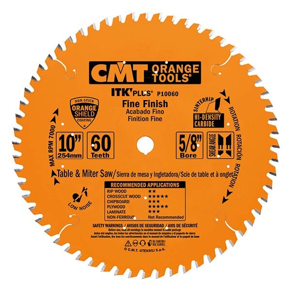 ITK Plus Finish Saw Blade, 10 x 60 Teeth, 10deg ATB+Shear with 5/8-Inch bore
