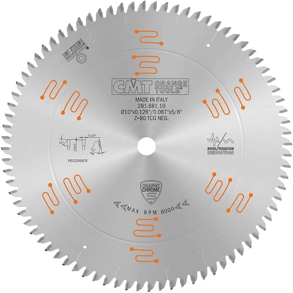 This saw blade is part of the CMT Industrial Orange Chrome/Xtreme premium line of blades. This is one of CMTs highest performing saw blades and designed for professional woodworkers who require high precision and durability. The special chrome carbide reduces tooth abrasion and the chrome plated body protects against rust, corrosion and long-lasting performance. This blade is designed to be run all day and can cut wood, plywood, OSB, laminate. Melamine, moldings and MDF.