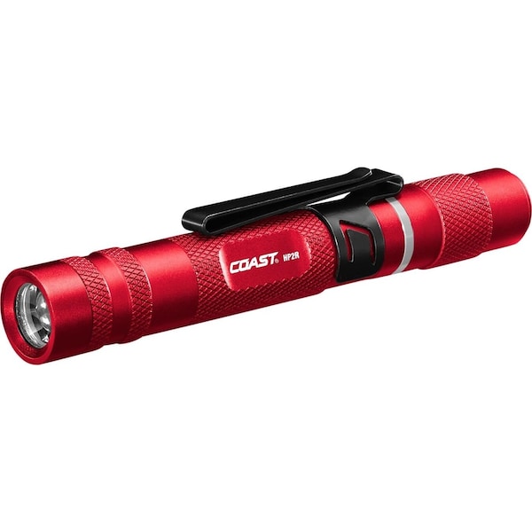 Line your pockets with portable light. Undersized but overperforming, the HP2R rechargeable pen light shines in three modes-medium, high, and low-with peak brightness of 280 lumens. Take it anywhere as your EDC and use the TWIST FOCUS optic to transition seamlessly between flood beam and spot beam based on your lighting need in the moment. A stainless-steel two-way pocket clip secures the light when not in use and doubles as a hands-free mount for the bill of hat. For those moments when you just want to hold the light in your mouth, we designed a durable rubber bite cap that fits onto the end of the flashlight-for better grip and to protect your teeth. This Rechargeable Plus flashlight can run on its included ZITHION-X rechargeable battery or on one AAA alkaline battery purchased separately. Constructed of top-grade materials, the HP2R is IP54 water-resistant and dust-resistant and backed by the COAST lifetime warranty.