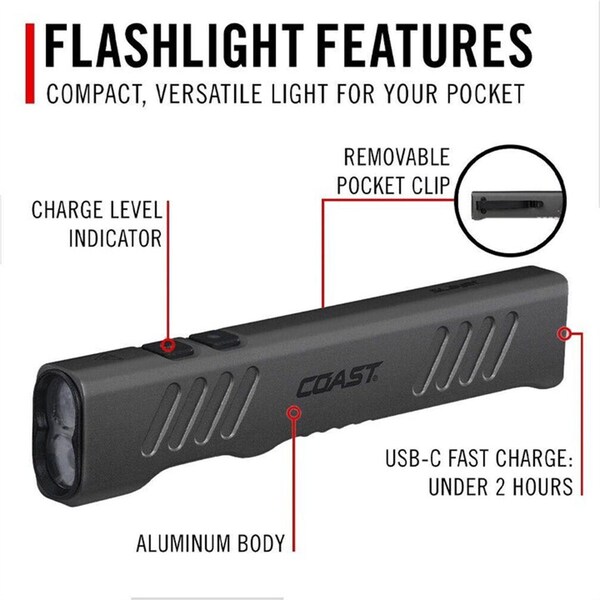 Slayer Pro 1150 Lumens Rechargeable Led Beamsaver Usb-C Flashlight, Black, 1EA
