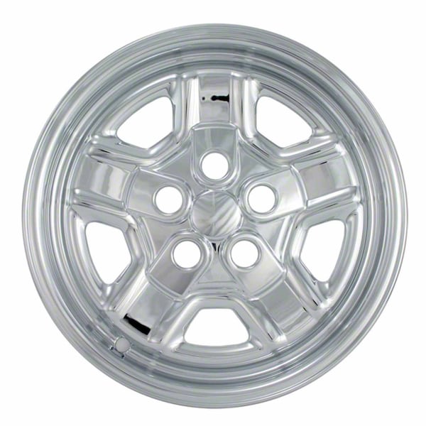 16", 5 Indented Spoke, Chrome Plated, Plastic, Set Of 4, Compatible With Steel Wheels