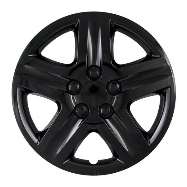 16", 5 Spoke, Gloss Black, Plastic, Set Of 4, Spring Steel Clip