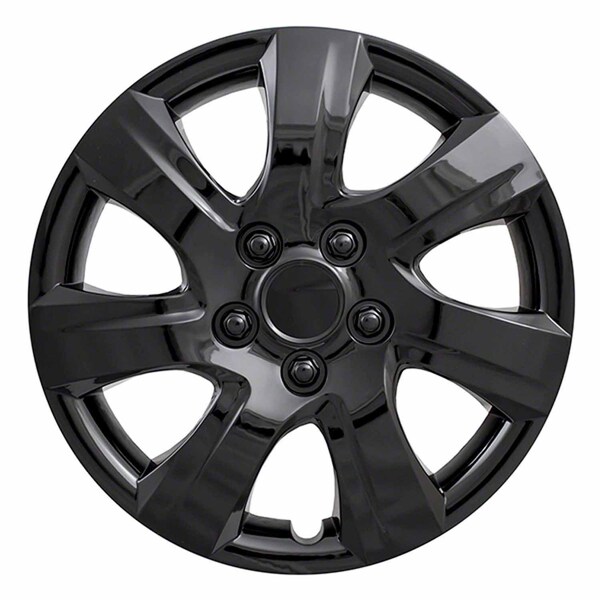 16", 7 Spoke, Gloss Black, Plastic, Set Of 4, Spring Steel Clip