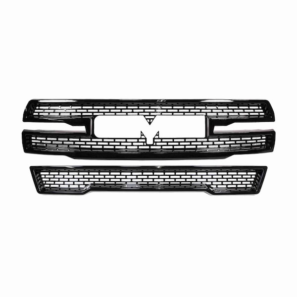 Overlay; 2 Piece Set; Mesh Style; OEM Shape; Gloss Black; ABS Plastic; With Logo Cutout; With Vents; Without Light Cutouts; Unlighted