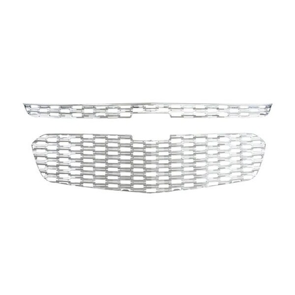 Overlay, Honeycomb Style, 2 Piece, With Emblem Cutout, Chrome Plated, ABS Plastic
