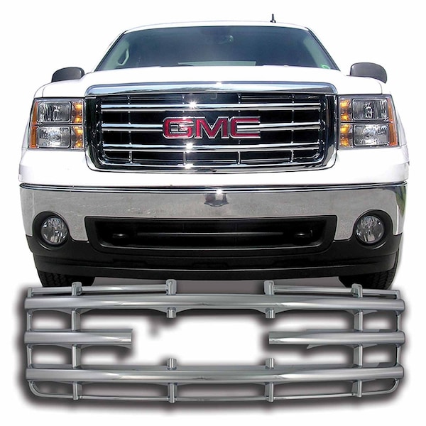 Overlay, Horizontal Bar Style, 1 Piece, With Emblem Cutout, Chrome Plated, ABS Plastic