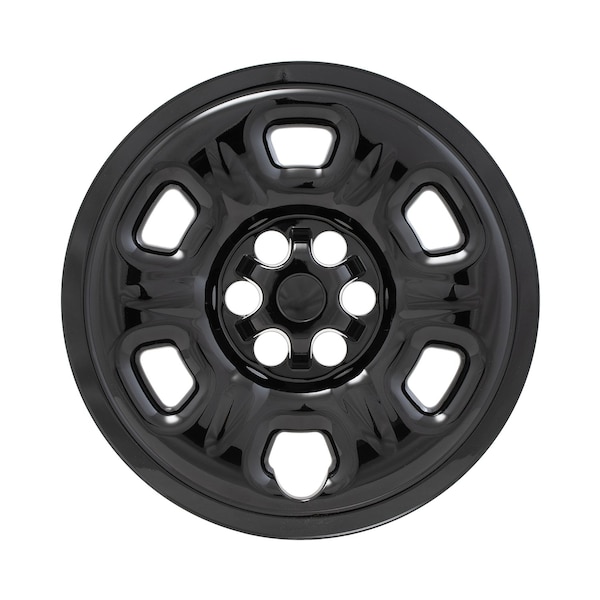 16 Inch; 6 Holes; Snap-On; Painted; Gloss Black; ABS Plastic; Compatible With Steel Wheels; Set Of 4; Fits Over and Into OEM Wheel