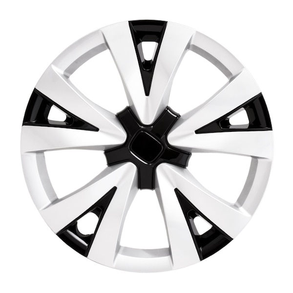 16 Inch; 5 V Spoke; Painted; Gloss Black/ Silver; Automotive Grade ABS; Set Of 4; Fits Over OEM Steel Wheel