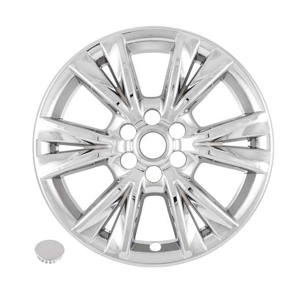 18 Inch; 6V Spokes; Snap-On; Chrome Plated; ABS Plastic; Not Compatible With Steel Wheels; Set Of 4; Fits Over and Into OEM Wheel