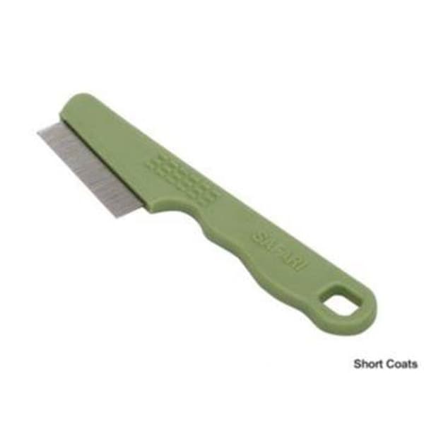 Safari Flea Comb Safari(R) has designed 2 flea combs that is specific for short hair or long hair coats, which aid in removing fleas and detecting skin conditions. Before using this comb, remove any mats and tangles that could damage the teeth of the comb. If needed, apply flea treatment. Comb your dog slowly, periodically checking the teeth of the comb for fleas or debris. Pay particular attention to areas around the ears, nape of neck, and base of tail. Between strokes, dip the comb into a cup of water with mild detergent to kill the fleas left on the comb.