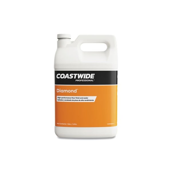 Give your flooring the high-gloss, wet-look treatment. A premium blend of extremely hard, new-generation acrylic terpolymers, thermoplastics, resins and plasticizers delivers exceptional leveling, adhesion and durability along with excellent reflective properties. Effective on most resilient surfaces, using most maintenance methods, Diamond High-Performance Floor Finish provides excellent resistance to black heel marks and scuffs. Though burnishing is not required to achieve excellent results, this indiamond-hardin finish looks its best after being buffed with 1,000- to 3,000-rpm machines. One gallon provides between 2,500 and 3,000 square feet of coverage, depending on flooring type and condition. Application: Floor Finish/Sealant; Applicable Material: Acrylic; Laminates; Linoleum; Polymeric Flooring; Rubber; Sealed Cork; Sealed Wood; Sheet Vinyl; Solid Vinyl Tile SVT; Vinyl Composition Tile VCT; Scent: Fruity; Physical Form: Liquid.