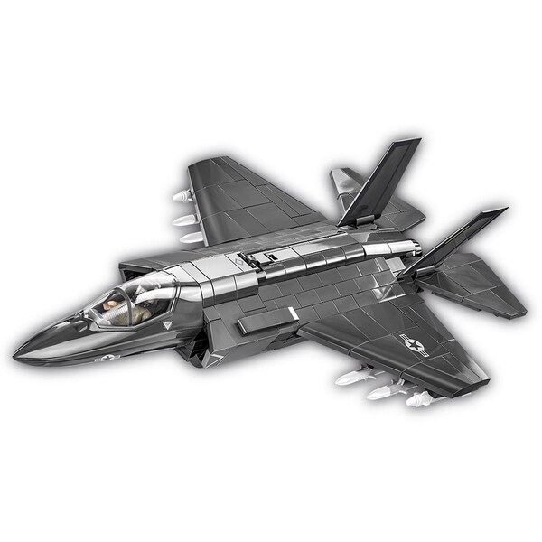 The F-35B Lightning II is a single-seat, multi-role fighter designed by Lockheed Martin Corporation. The F-35 version B is a STOVL short-take-off and vertical landing aircraft intended to replace the machines of the United States Marine Corps and those belonging to the British RAF and Royal Navy. Use 594 of the highest-quality COBI building blocks to build the most modern multi-role F-35B Lightning II fighter in the world, licensed by the Lockheed Martin armaments mega-concern. The set has been carefully designed in a 1 - 48 scale model. The bricks specially designed for this set have been covered with high-quality prints. The characteristic cockpit is made very realistically and can be opened to accommodate a figure of a pilot equipped with a helmet and an oxygen mask with a hose. With the set you also get a block display stand with a plate containing the name of the aircraft. Thanks to the intuitive instructions construction is simple and will not cause problems for less advanced builders. The set will meet the expectations of aviation enthusiasts, military and block fans. The F-35 will also look great in your collection, no matter how old you are. The F-35B LIGHTNING II has been in service since 2015 and is capable of performing close support missions, bombing and typical fighter air combat missions. The F-35 is a supersonic aircraft with reduced in-flight detectability, has high reconnaissance and electronic warfare capabilities in the field of detection, tracking, targeting and jamming. The missile armament consists of up to 6 AIM-120 AMRAAM, AIM-9X Sidewinder or AIM-132 ASRAAM missiles in internal ammunition chambers or two air-to-air missiles and two 455 kg bombs. Weapons for destroying ground targets can be JSOW or GBU-39 SDB bombs 4 in each bomb chamber, Brimstone anti-tank missiles, cluster bombs or AGM-88 HARM anti-radar missiles. At the cost of losing stealth property, it is possible to suspend the armament up to four under-wing pylons and two at the ends of the wings for AIM-9. The aircraft project is jointly financed by the governments of the.